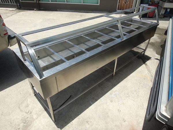 ต้องการขาย เค้าเตอร์สเตนเลส อุ่นข้าวแกง ขนาด 8 ถาดใหญ่ ขนาดยาว 2.80 เมตร ทำความร้อนด้วยระบบฮีตเตอร์ ประหยัดไฟ สภาพ 85% ทำจากเสตนเลสอย่างดี