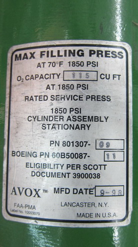ถังออกซิเจน O2 ยี่ห้อ AVOX Made in USA ขนาด 115 CUFT. สภาพดี พร้อมใช้งาน