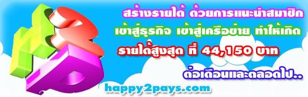 ธุรกิจออนไลน์ Happy2pays สร้างรายได้ 44,150 บาทต่อเดือน