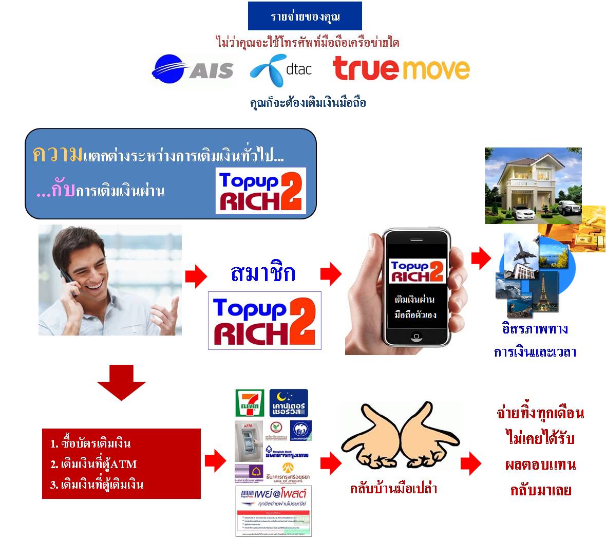 topup2rich แฟรนไชน์ธุรกิจเติมเงินมือถือ ลงทุนครั้งเดียว รับรายได้ตลอดชีพ ไม่ซื้อ ไม่ขาย ไม่รักษายอด