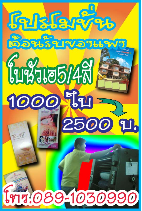 รับพิมพ์โบร์ชัวขนาด A4/4สี/1000ใบ/ใบละ 3บาท 3000 บาท โทร. 089-1030-990