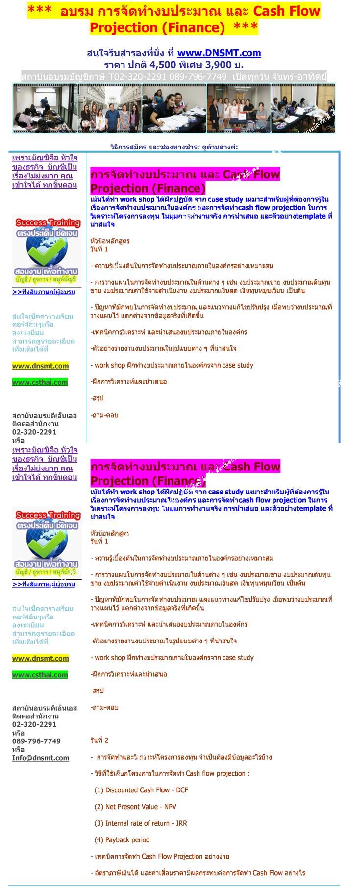 เปิดแล้ว อบรมบัญชี หลักสูตร จัดทำงบประมาณ และ cash flow Projection (Finance)