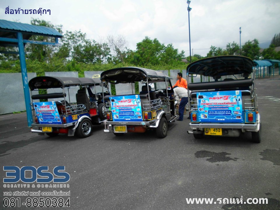 สื่อท้ายรถตุ๊กๆ ป้ายท้ายรถตุ๊กๆ สื่อติดรถสองแถว ป้ายข้างรถสองแถว (081-8850384 คุณเก่ง)