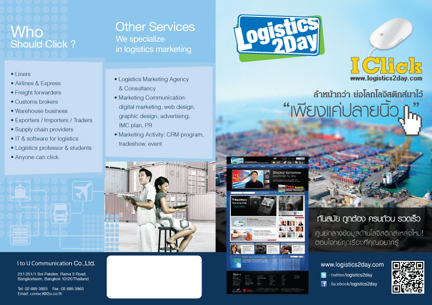 Logistics2day, นำเข้า-ส่งออก, โลจิสติกส์, Logistics Directory, โลจิสติกส์, Air-Sea Schedule, ตารางเดินเรือ, ตารางเที่ยวบิน, Port Directory, Service Provider,กูรูด้านโลจิสติกส์,คณะโลจิสติกส์, วงการโลจิสติกส์