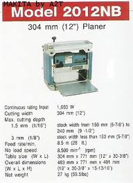 ข้อมูลทางเทคนิคเครื่องรีดไม้ 12 นิ้ว Makita รุ่น 2012NB