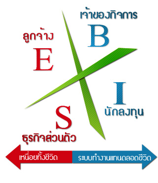 คือ B และ I เพื่อรับรายได้จาก Passive Income ที่ไม่ต้องทำก็มีรายได้ คนรวยไม่ทำงานเพื่อเงิน เงินสร้างรายได้แทนคุณ ทําแค่ปีสองปีแรก แล้วไม่ต้องทําอะไรอีกเลยทั้งชีวิต ธุรกิจเครือข่ายพาคุณข้ามไปฝั่งขวาได้แต่จะเลือกก็ต้องมีความเสี่ยงตํ่า โปรดักส์หรือสินค้าขายตัวมันเองได้จริงไม่ต้องบังคับซื้อใช้