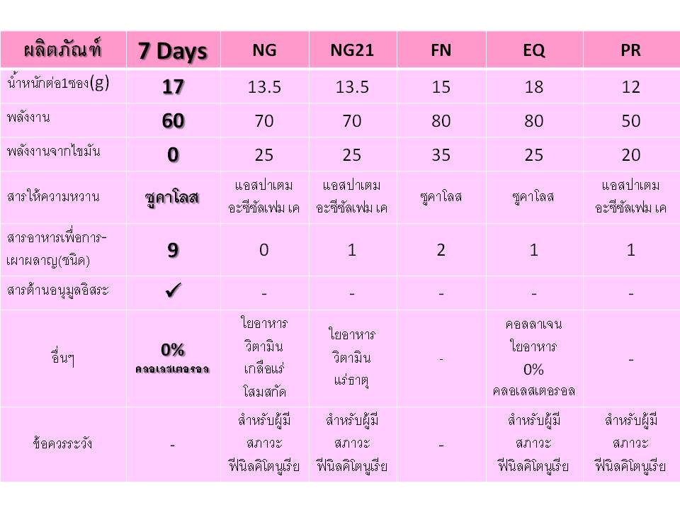 ตารางความแตกต่างของกาแฟ 7 Days Srim Coffee กับกาแฟที่ขายในท้องตลาด