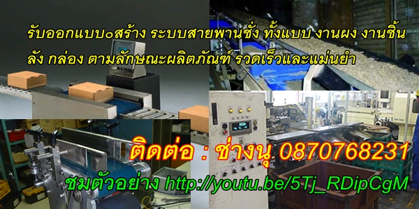 ออกแบบ ผลิตสายพานลำเลียงแบบชั่ง ทั้งแบบงานเป็นผง เป็นชิ้น ลัง กล่อง บรรจุภัณฑ์ต่างๆ สะดวก รวดเร็ว แม่นยำ สนใจติดต่อ ช่างนุ 0870768231 ชมการทำงานที่ http://youtu.be/5Tj_RDipCg