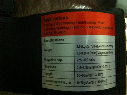 - น้ำหนักเบา ทำจากอัลลอย+พลาสติก(เฉพาะตัวลังบรรจุตะปูม้วน)