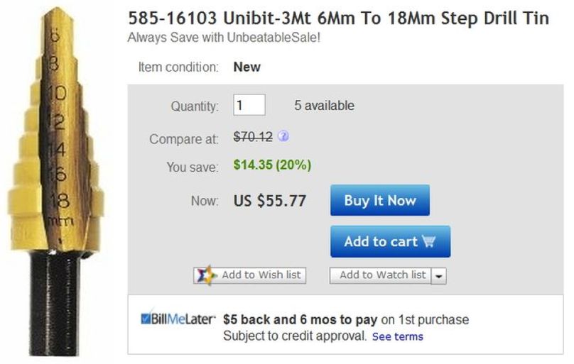 ต้องการขายดอกเจาะStep Drill ยี่ห้อ UNIBIT #3MTรุ่นTITANIUM (MADE IN USA by IRWIN) เจาะได้7ขนาดตั้งแต่ 6mm-18mm ก้านจับ10mm ของใหม่แท้100% ราคา1280.- ติดต่อ022512637 พรเทพ