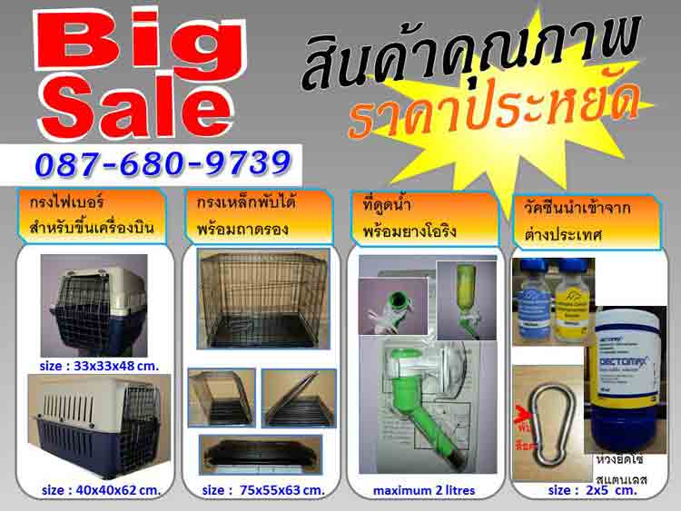 พาน้องหมาน้องแมวขึ้นเครื่องบิน กรง กรงสุนัข กรงหมา กรงแมว กรงสำหรับใส่เดินทาง Fiber Boxขนาด33*33*48ซม.(เป็นขนาดภายนอก) 600 บาท และ ถาด ถาดรอง ถาดรองปัสสาวะทำจากแผนสังกะสีอย่างหนา บริเวณมุมมีรูน้ำทิ้งต่อสายยาง เพื่อราดน้ำได้เลย จึงไม่ต้องเสียเวลายกถาดไปเท ถาดขนาด 110x110x5 ซม. ราคา 1200 บาท และห่วงคล้องโซ่ ห่วงยึดโซ่ สแตนเลส คุณภาพดี วัคซีน วัคซีนรวม วัคซีนป้องกันพิษสุนัขบ้า วัคซีนป้องกันพิษหมาบ้า ยาฉีดป้องกันเห็บ หมัด โรคเรื้อน ยาหยอดหูป้องกันตัวไร ครีมทารักษา HOT SPOTยาห้ามเลือด ยาห้ามเลือดแบบเฉียบพลัน ยาผงห้ามเลือดแบบเฉียบพลัน สายจูง เชือก โซ่ สินค้านำเข้า เหนียว ทนทาน 087-680-9739 กทม.