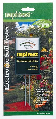 เครื่องวัดดิน อิเล็กทรอนิกส์ Rapitest รุ่น 1860 ได้ออกแบบโครงสร้างให้แข็งแรงทนทานต่อการใช้งาน อ่านค่าได้อย่างแม่นยำ สามารถวัดค่ากรดด่าง ดิน (pH) และระดับสารอาหารในดิน ทั้งระดับไนโตรเจน, ฟอสฟอรัสและโปแตช (NPK) เครื่องวัดดิน อิเล็กทรอนิกส์ Rapitest รุ่น 1860 นี้ จำเป็นต้องใช้แบตเตอรี่ AA 1 ก้อน มาพร้อมคู่มือและตารางเปรียบเทียบช่วง ค่า pH ที่เหมาะสมกับพืชถึง 350 ชนิด
