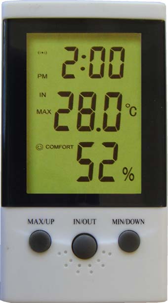 ความละเอียดการแสดงผล : 2 ตำแหน่ง มีนาฬิกาบอกเวลา และสามารถตั้งเวลาปลุกได้ ระบบแสดง Human Body Comfort สามารถอ่านค่าอุณหภูมิภายใน (Indoor Temp)และอุณหภูมิภายนอก (Outdoor Temp)สลับกันได้ มีสายวัดอุณหภูมิความยาว 2 เมตร หน่วย