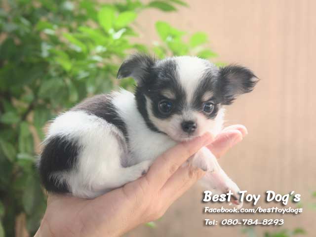 "ซูก้า"(((___Chihuahua T-Cup ไต้หวัน___))) ~~~เกรดพ่อแม่นอก ขนยาว สามสี หัวโต หน้าหักและสั้น +++ // ใบเพ็ดเต็มใบ // +++