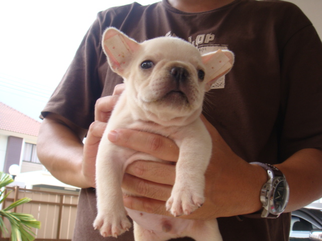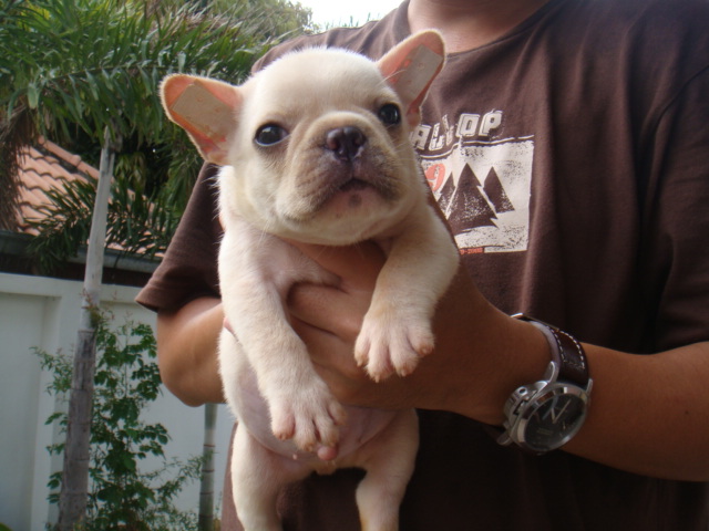 ลูก FRENCH BULLDOG สีครีมอ่อนๆ เพศผู้ 2 ตัว (รูปที่ 1,2,3 ตัวที่1) ,(รูปที่3,4ตัวที่2)น่ารักๆ สายอเมริกา ตัวเล็กสั้น มีเพ็ดดีกรีจากสมาคมฯ รูปถ่ายตอนอายุ 35 วัน สนใจติดต่อ tel.087-0339026