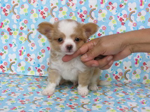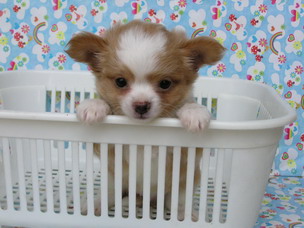 ขายชิวาวาขนยาว สีน้ำตาลส้ม-ขาว มาร์กกิ้งขาว ถุงเท้า 4 ข้าง สวยๆ (จากชิวาวาเฮ้าส์)