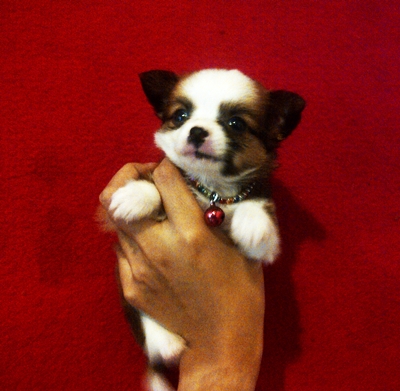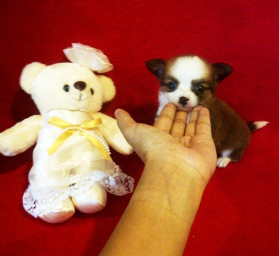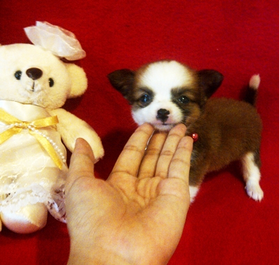 Chihuahua ขนยาว เพศผู้ แฟนซี สีน้ำตาล-ขาว มาร์คสวย รับรองไม่ผิดหวัง