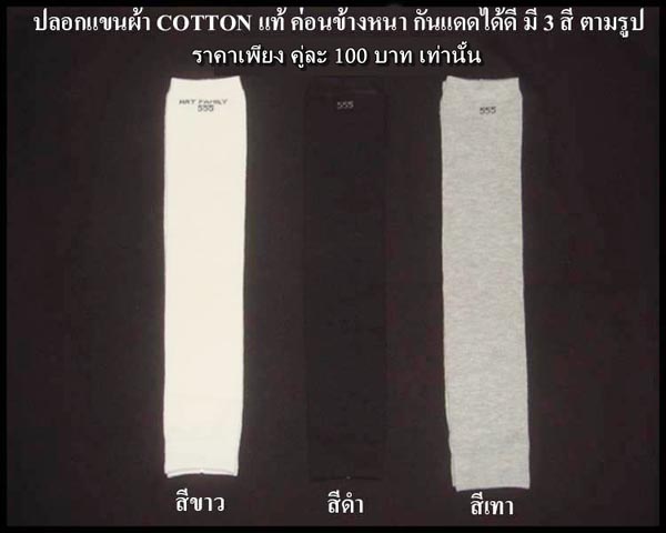 ปล. นัทขายปลีก-ส่ง ปลอกแขนแบบต่าง ๆ อยู่บนโลกออนไลน์นี้มาได้ 3 ปีกว่าแล้วครับ ลองเข้ามาแวะชมสินค้าของนัทก่อนครับ เรื่องราคาและคุณภาพของสินค้า การจัดส่งสินค้า รับรองไม่ทำให้คุณผิดหวัง ขอบคุณครับ ..