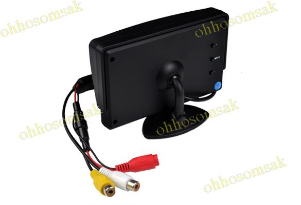 คุณสมบัติ 1. เป็นจอ TFT LCD 4.3 นิ้ว คุณภาพสูง (อัตราส่วน 16 : 9) ทำจากวัสดุ ABS สีดำ 2. รับได้ทั้งระบบ PALและ NTSC ปรับอัตโนมัติ 3. ความละเอียดจอภาพสูง (1440XRGBX272(v)) ขนาดจอ 96 X 56 มม. 4. ปรับมุมเงยได้ มีปุ่มปรับด้านหลัง ทั้งความสว่าง ความคมชัด ผลกระทบแสงต่ำ พร้อมที่บังแสงสะท้อน 5. ใช้ไฟรถ 12 โวลล์ กำลัง 2 วัตต์ 6. ช่วงการทำงาน –(10)-80 องศาเซลเซียส 7. สามารถต่อเข้าได้ 2 ช่อง(กล้อง 1 ตัว, วีดีโอ 1 ตัว หรือ กล้อง 2 ตัว หรือต่อเครื่องเล่นอื่นๆ) ให้ทั้งความบันเทิงและความปลอดภัยในเวลาเดียวกัน(เมื่อต่อกับกล้องถอยหลังเพื่อป้องกันอันตราย ที่จะเกิดกับเด็ก สัตว์เลี้ยง ทรัพย์สิน ฯลฯ) 8. ง่ายต่อการติดตั้ง ในกล่องประกอบด้วย 1. จอมอนิเตอร์ 1 ตัว ขนาด 120X75X 15 มม. 2. สายต่อไฟตรง 1 เส้น 3. สก๊อปเทปติดฐาน 3M 1 แผ่น