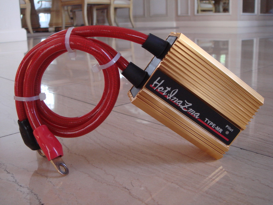 คุณสมบัติ HOTINAZMA TYPE-MR BOX 1.ทำให้เครื่องยนต์เดินเรียบ และรอบคงที่ ไฟไม่ตกหรือกระชาก 2.เพิ่มกำลังแรงม้าของเครื่องยนต์ ทำให้อัตราเร่งดีขึ้น 3.ประหยัดน้ำมันเพิ่มขึ้น เพราะเครื่องยนต์ทำงานได้เต็มกำลัง 4.ทำให้ระบบไฟฟ้าในรถยนต์ดีขึ้น ไม่มีอะไรมารบกวน 5.ช่วยยืดอายุการใช้งานของ แบตเตอร์รี่ 6.สำหรับเครื่องยนต์ไม่เกิน 2000 cc 7.ใช้ได้ทั้งเครื่องยนต์ เบนซิล และ ดีเซล 8.ติดตั้งง่าย เพียงแค่ต่อสายเข้าไปที่ ขั้วบวก และ ขั้วลบ ของแบตเตอร์รี่ รถยนต์