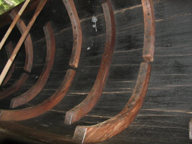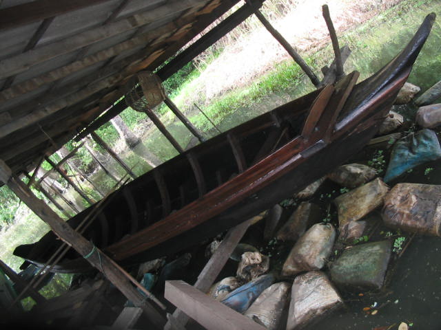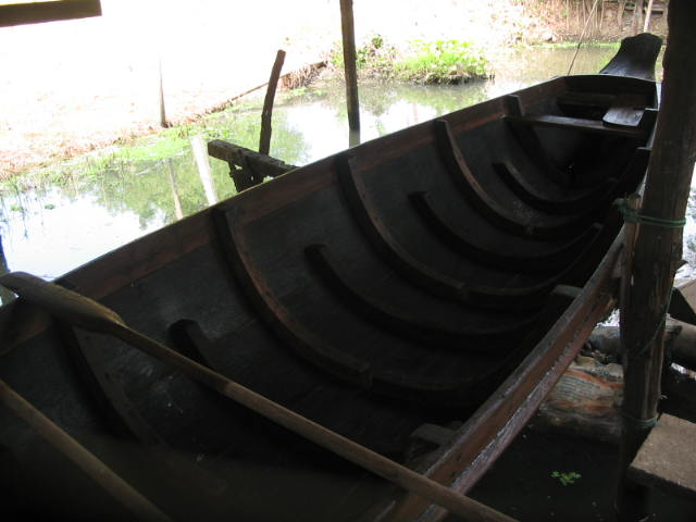 It made of a big tree. It is 2 meters wide and 6 meters long. The boat owner is an old person. She can’t take care it.She wants the new owner keep the boat forever.