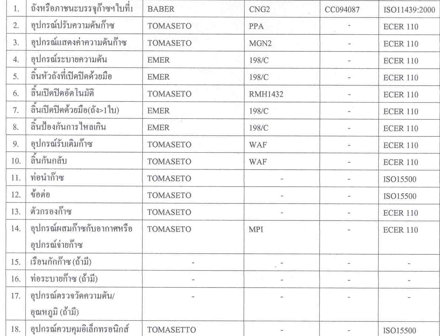 1 ถังแก๊ส BABER 100 กก. 2. อุปกรณ์ความดันก๊าซ, ลิ้นเปิดปิด AUTO, ชุดควบคุม, หม้อต้ม, อุปกรณ์เติมก๊าซ ยี่ห่อ TOMASETO 3. อุปกรณ์ระบายความดัน, ลิ้นเปิดปิดด้วยมือ EMER ติดใช้งานไปเพียง 30,000 กิโล จริงๆแล้วไม่อยากถอดแต่เนื่องจากบ้านและสถานีห่างกัน 20 กว่ากิโล ไปกลับก็ 40 กว่ากิโล ต้องมารับของเองนะครับ