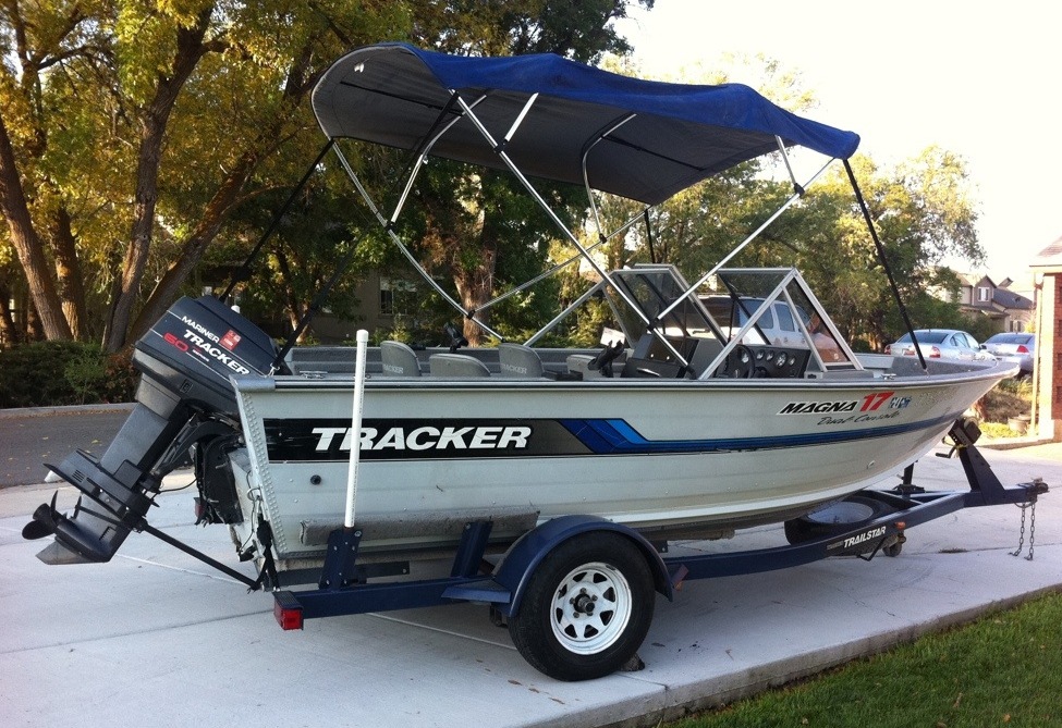 เรืออลูมิเนียม Tracker Magna 17 ฟุต มีห้องขังเหยื่อ ,Downriggers ,ที่ปักคันเบ็ด x 4 - เครื่อง Mariner 60 Hp 2 stroke