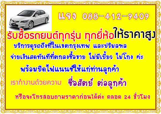 088-4129409 แจง รับซื้อรถยนต์ทุกรุ่น ทุกยี่ห้อ ทั้งเก๋งและ กระบะ ทั้งเก่าและใหม่ TOYOTA Honda Misubishi Nissan Mazda Chevrolet Ford Jeep SUBARU SUZUKI ให้ราคาสูงที่สุด บริการดูรถถึงที่ในเขตกรุงเทพ และปริมลฑล จ่ายเงินสดทันทีที่ตกลงซื้อขาย