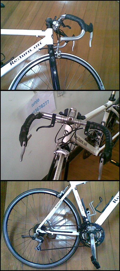 ขายจักรยานเสือหมอบขาว อลูมิเนียมทั้งคัน Re turn off ล้อ700C X 23 ขนาด ท่อตั้ง 46 ท่อนอน51 รวม 21สปีด ปั่นสบาย น้ำหนักเบา ตามรูปคับ