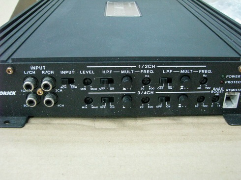 สนใจสินค้า 0810012112 อ๋า ดูสินค้า http://www.audio-car-accessories.com จำหน่ายเครื่องเสียงรถยนต์ทุกชนิดทั้ง วิทยุ เพาเวอร์แอมป์ ลำโพง กลาง แหลม ลำโพง ซับ ปรี ครอส จอ 2 DIN คาปา ใหม่และมือสอง รับบัตรเครดิต โทรนัดก่อนเดินทางนะครับ ที่ตั้ง อาคาร อาคารศรีวรจักร เลขที่ 222 ถนนหลวง เขตป้อมปราบฯ กรุงเทพฯ 10100 ชั้น 2 ขึ้นบันไดเลื่อนติดตู้ ATM ถึงชั้น 2 เลื้ยวขวา ห้องหัวมุม S27 -------------------------------------------------------PROKICK LS-804Rของใหม่เสียงดี Frequency Response : 10Hz ~ 40KHz RMS Power at 4 ohm Stereo : 90W X 4CH RMS Power at 4 ohm Mono : 260W X 2CH RMS Power at 2 ohm Stereo : 130W X 4CH Max Power : 900W T.H.D. : 0.03% Input Sensitivity : 200mV ~ 4V Input Impedance : 20K ohms High Pass Subsonic Filter : 15 ~ 30Hz Low Pass Crossover : 40 ~ 230Hz Bass Boost at 45Hz : 0 ~ 18dB Damping Factor : >200 S/N Ratio : 100dB Channel Separation : 60dB