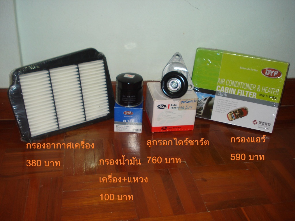 รายการอะไหล่ กรองอากาศเครื่อง / กรองแอร์ / กรองน้ำมันเครื่อง+แหวน และ ลูกรอกไดร์ชาร์ต