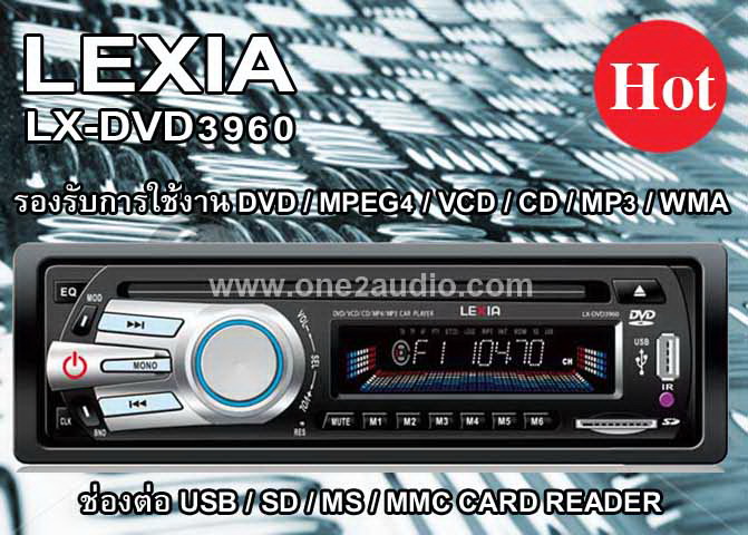 (one2audio.com) เครื่องเล่น DVD LEXIA LX DVD3960 รองรับการใช้งาน DVD / MPEG4 / VCD / CD / MP3 / WMA มีช่องเสียบ USB