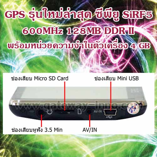 [Gateway-inno.com] +++++New++++GPS รุ่นใหม่ล่าสุด ซีพียู SiRF5 600MHz 128MB DDR II พร้อมหน่วยความจำในตัวเครื่อง 4 GB มี Av-in สั่งพิเศษเพื่อคุณ ***สามารถชำระค่าสินค้าด้วยบัตรเครดิต หรือ Counter Service ได้ทั่วประเทศค่ะ****