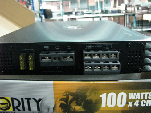 สนใจสินค้า ติดต่อ 0810012112 อ๋า ดูสินค้าที่ http://www.audio-car-accessories.com กรุณาโทรสอบถามก่อนเดินทางกันสินค้าขายไปแล้ว ต่างจังหวัดบริการส่งด่วนแบบ EMS ยินดีรับบัตรเครดิต.................................................................PRIORITY PT-446F ของใหม่เสียงดีมีประกันแอมป์ 4 ชาแนลแบรนด์ดัง กำลังขับดีเยี่ยม สินค้าใหม่+ประกันโดยตรงบริษัท 1 ปีบริการหลังการขาย Supply Voltage 11-15V DC RMS Output at 1KHz@ W/A THD 4 x 60W 4 Ohm + 14.4V Supply 10% THD 4 x 70W RMS Output at 1KHz @ W/A 3% THD at 2 Ohm 4 x 90W Channel Separation >55dB Frequency Response 10Hz - 30kHz S/N Ratio >80dB Low Level Input 200mV - 5V Low Pass Filter 50 - 300Hz High pass Filter 120 - 3KHz Bass Boost 0 - 12dB Subsonic Freq. 15Hz - 45Hz มิติตัวเครื่อง 323x240x50