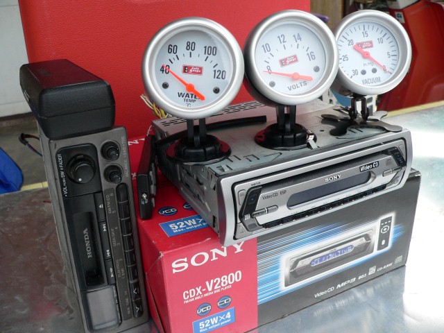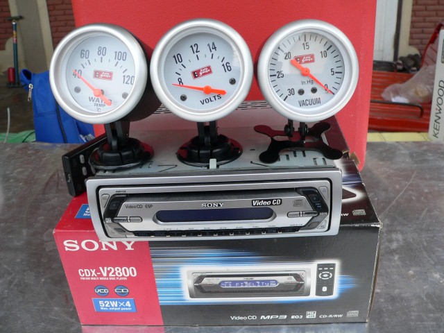 ขายเครื่องเล่น Video CD/MP3 ยี่ห้อ Sony พร้อม เกจวัด 3 ชิ้น ยี่ห้อ Auto gauge มีวัน Water Temp, Volt, Vacuum ขายรวมเลยครับ ให้ทั้งหมดในภาพ พร้อมส่ง