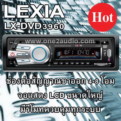 (one2audio.com) เครื่องเล่น DVD LEXIA LX DVD3960 รองรับการใช้งาน DVD / MPEG4 / VCD / CD / MP3 / WMA มีช่องเสียบ USB ***สามารถชำระค่าสินค้าด้วยบัตรเครดิต หรือ Counter Service ได้ทั่วประเทศค่ะ****
