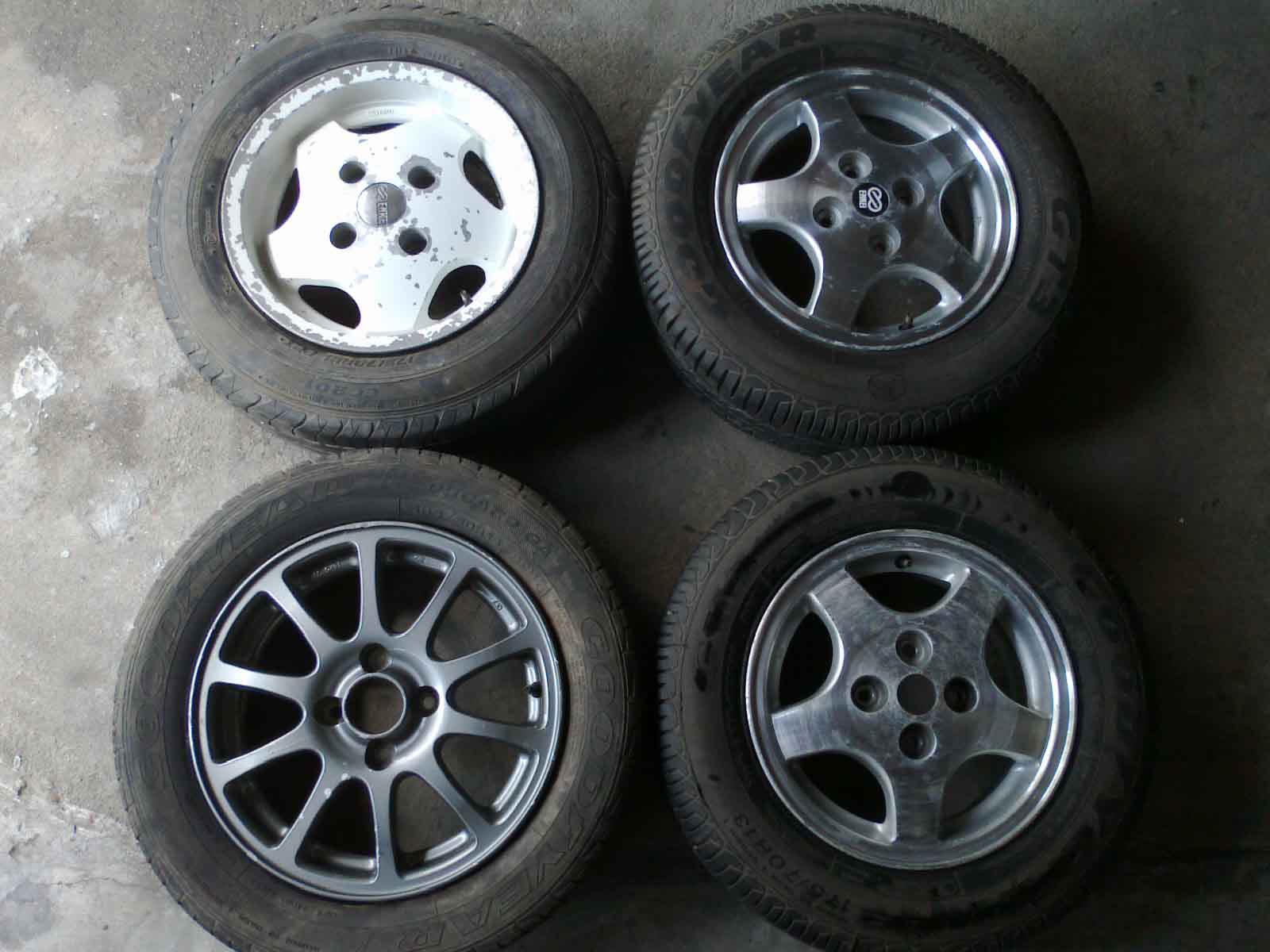 2. ล้อแม็คอลูมิเนียม Enkai ขอบ 13 ปัดเงาแล้ว 1 คู่ ราคา 2500 บาท ( ยางใช้ไม่ได้แล้วนะครับ )