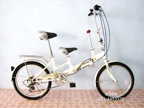 คุณพ่อปั่น.....คุณแม่ซ้อนท้าย…..คุณหนูนั่งหน้า……. ช่วงยาวมีที่สำหรับคุณหนู+ที่วางเท้า เฟรมเหล็ก hi-tensteel แข็งแรง, ทนทาน คอพับล็อคได้แน่นหนา + ปรับระดับได้ เกียร์shimano 6sp. มีตระแกรงหลังแข็งแรงสวยงาม น้ำหนัก 14กก. ราคาถูก เพียง 3,800 บาท มีแผนที่ตั้งร้านดูรายละเอียดสินค้าเพิ่มเติมและอัพเดทได้ที่ http://www.k-bike.net/ ติดต่อร้านK-bike 081-445-3336 เก๋(ถนนบ้านกล้วย-ไทรน้อย)นนทบุรี ถนนทางเข้าไปตลาดน้ำไทรน้อย