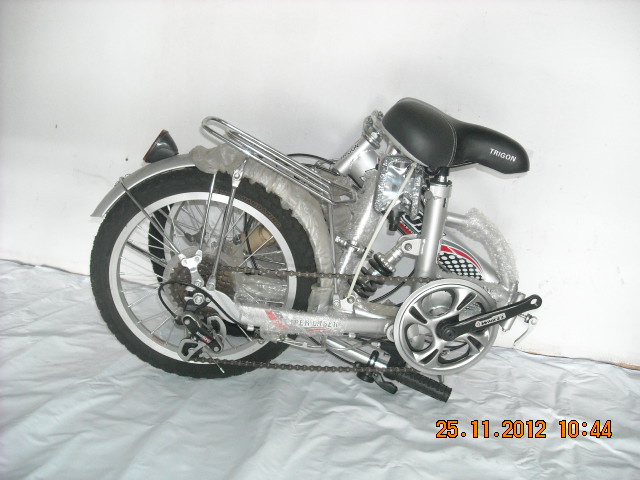 รุดสต๊อก จักรยานพับเฟรมเหล็กมีโช๊ค 16 นิ้ว 6 สปีด TRIGON รุ่น Super Laser สีบรอน