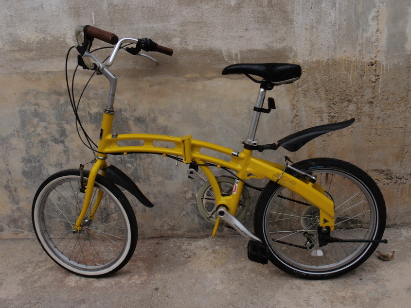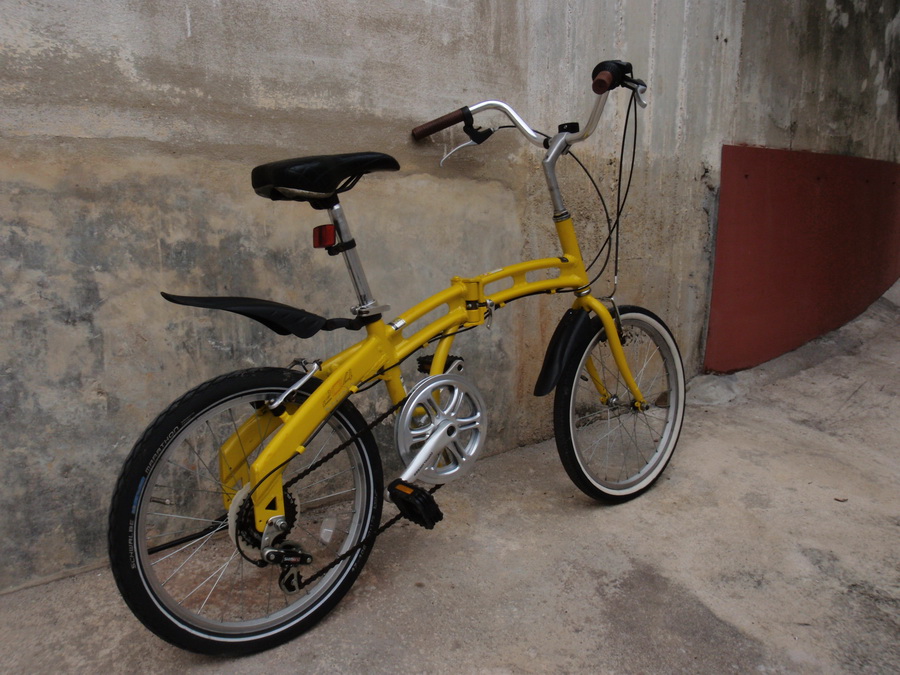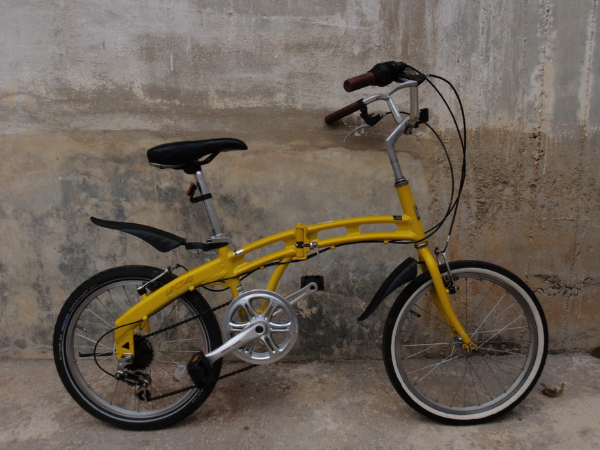 ขายจักรยานพับ Doppel Ganger รุ่น 204 มือสองนำเข้าจากญี่ปุ่น เฟรมอลูมิเนียม สีเหลือง เกียร์ Shimano 6 สปีด วงล้อ 20 นี้ว มีบังโคลนหน้า-หลัง น้ำหนักเบา ปั่นลื่น
