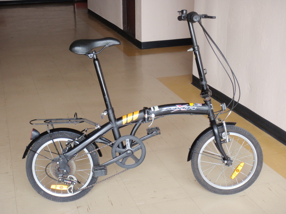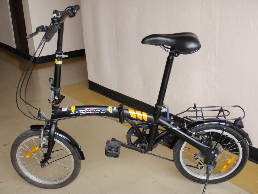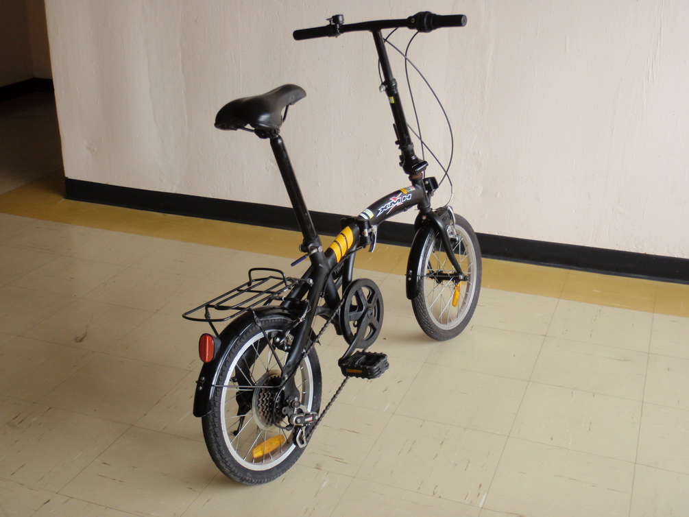 ขายจักรยานพับมือสอง นำเข้าจากญี่ปุ่น ยี่ห้อ XMH วงล้อ 16 นี้ว เฟรมเหล็กสีดำด้าน คาดเหลือง ทรงโค้งสวย ฟังชั่นครบครับ ชุดเกียร์ Shimano6 สปีด พับกลางได้ คอพับ+ปรับสูงต่ำได้ มีตะแกรงหลัง วี เบรกหน้า+หลัง บันไดพับได้ มีไฟสะท้อนแสงหน้า+หลังรถสวย สภาพดี