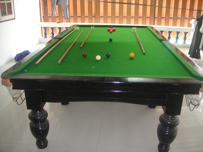 โต๊ะสนุ๊กเกอร์ ขนาด 10 * 5 โต๊ะหินชนวน ผ้าสักหลาด 90 % (ไม่มีขาด) อุปกรณ์ครบ : มีลูก 6 แดง , ไม้คิว 4 อัน , กระดานจดแต้ม , ราวแขวนไม้