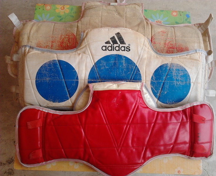 อุปกรณ์เทควันโดมือสอง ชุดเกราะป้องกันลำตัว 1000 บาท (7 ตัว)สภาพ85% 0817242325