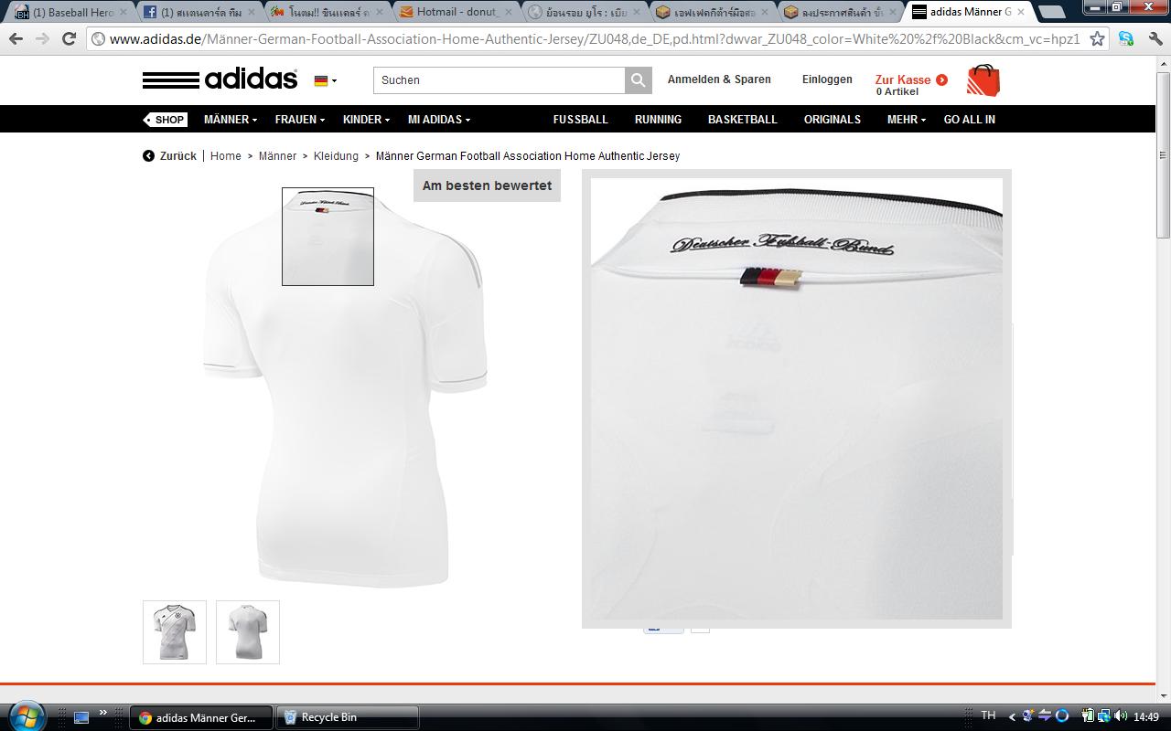 เสื้อทีมชาติเยอรมัน คุณภาพ ห้าดาว ของแท้ 100% จากเยอรมัน คือผมอยู่ที่เยอรมันอ่ะนะครับ แล้วจะกลับ ไปเยี่ยมแม่ที่เมืองไทย เลยซื้อไว้ มีให้สำหรับแฟนตัวจริงเยอรมัน ตัวเดียวครับ ราคา 3,000 บาท จากปกติ 6,000 บาทครับ ตัวเดียวกับที่เค้าใส่แข่งอ่ะครับ ถ้าติดต่อผมเร็ว ลดให้ได้อีกครับ ปล. อยากได้สินค้าอะไรดีๆ ที่เยอรมัน ติดต่อสอบถามได้ครับ จะหามาให้