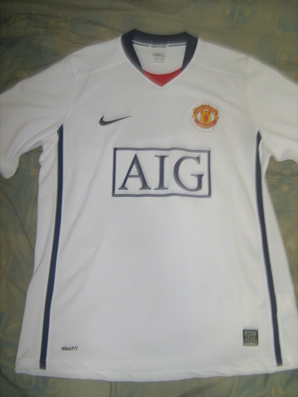 แมนยู ชุดเยือน 3 สีขาว น้ำเงินแดง AIG ไซส์ M สภาพมือ 1 แต่ไม่มีป้านแทร๊ค ของแท้แน่นอน ราคาถูก 700 บาท