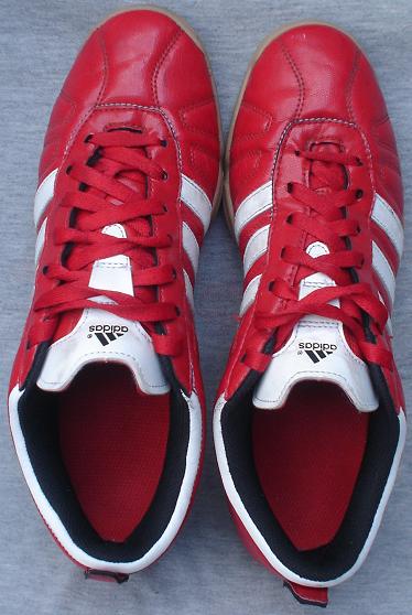 Adidas Adiquestra พื้นยางดิบแดงทั้งคู่คาดขาวเบอร์ 42