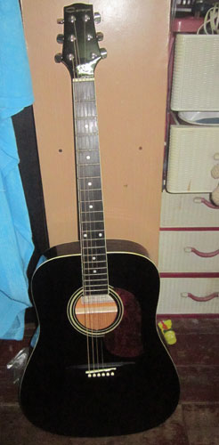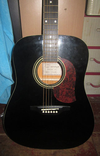 กีตาร์โปร่งสีดำ มือสอง ราคา 2200 เราซื้อเพราะดูการ์ตูนแล้วมันเท่ห์ดี เลยซื้อมาไว้แต่เล่นไม่เป้น ลองเล่นไม่กี่ครั้งก็เล่นไม่เป็น เก็บไว้ก็ไม่เป็นประโยชน์เลยตัดสินใจขาย ซื้อมาครั้งแรก 3500 ตอนนี้สภาพ 95 เปอร์เซ็น มีถุงใส่ด้วย ลดมาตั้งเยอะแน่ะ ขายถูกเพราะขายแพงจะไม่ได้เงิน -.-