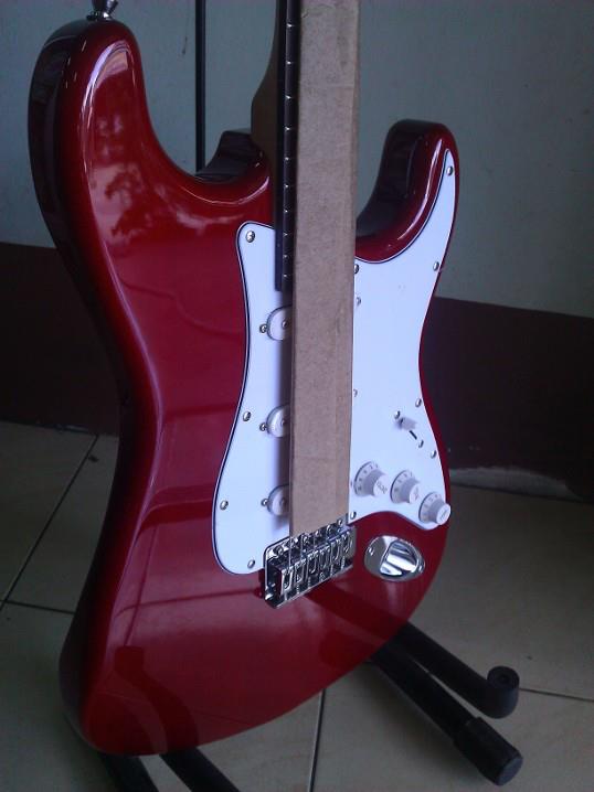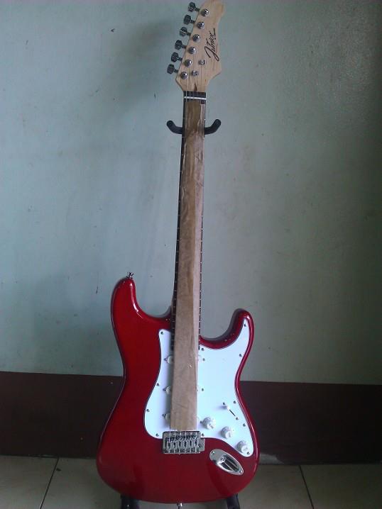 ขายกีตาร์ไฟฟ้า Junior by Clevan รุ่น ST 111 ทรง Strat สีแดงอวดลายไม้ ราคา 2900 บาท (คิดค่าส่งตามไปรษณีย์หรือตามตกลง) ติดต่อ กบ 08-1300-1068