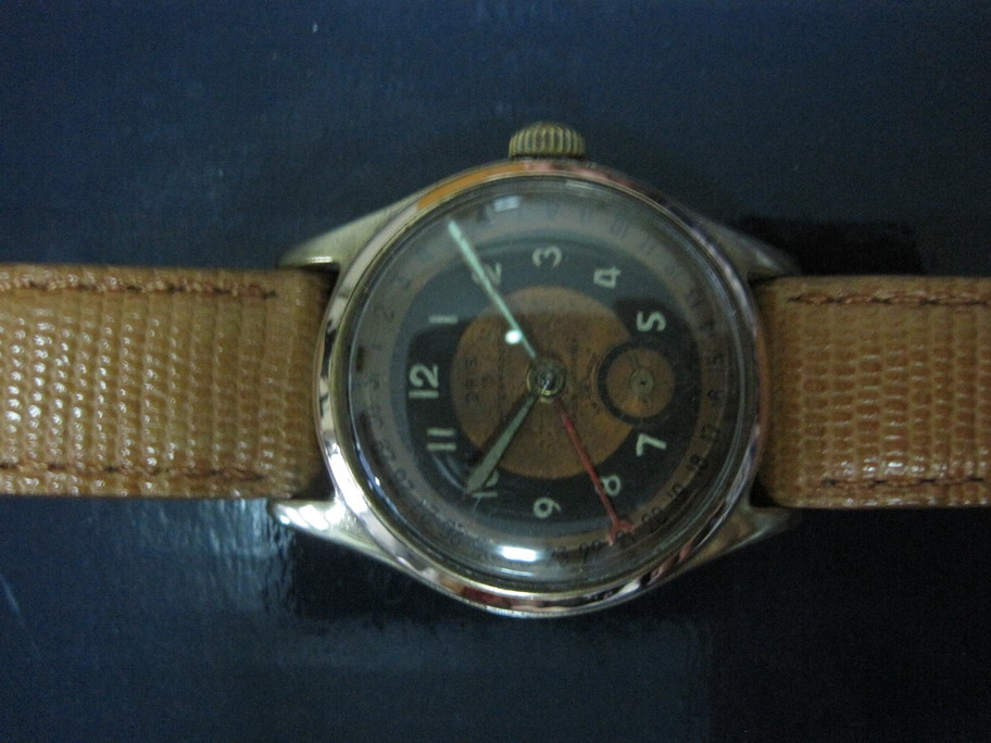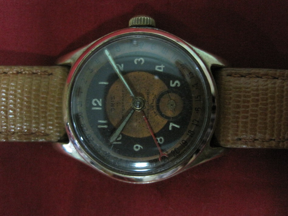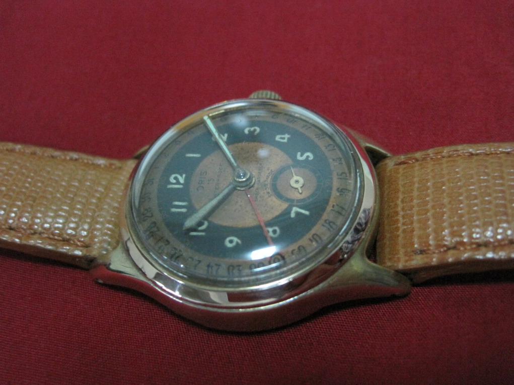 ขายนาฬิกาไขลาน โอริส (ORIS) สามเข็มครึ่ง มีเข็มวันที่แบบก้ามปู หน้าปัดสวยเดิม ขอบทองชมพู ตัวเรือนทองเหลือง สภาพดี เป็นนาฬิกาโบราณคลาสสิค (ขนาด BOY SIZE) สาย 16มม. ขายราคา 5,700บาท