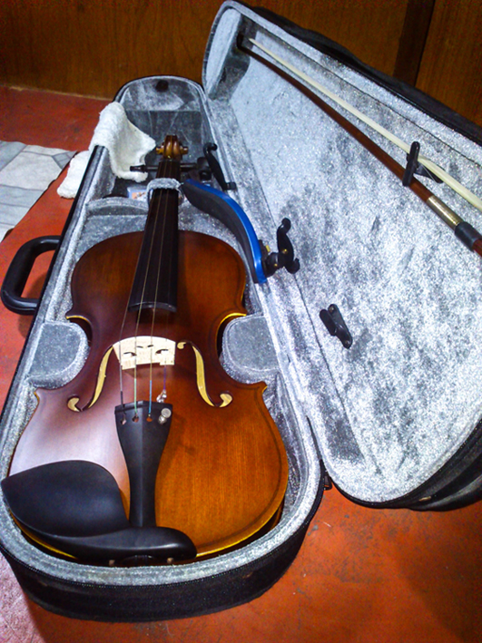 Violin Phoenix ขนาด 4/4 อายุการใช้งานราวๆ 20 วัน แล้ววางไว้เฉยๆ ตอนนี้ก็ใกล้ครบปีแล้ว อุปกรณ์พร้อมเล่น (ยังไม่ได้ตั้งสายนะครับ ตอนเก็บผมหย่อนสายไว้)